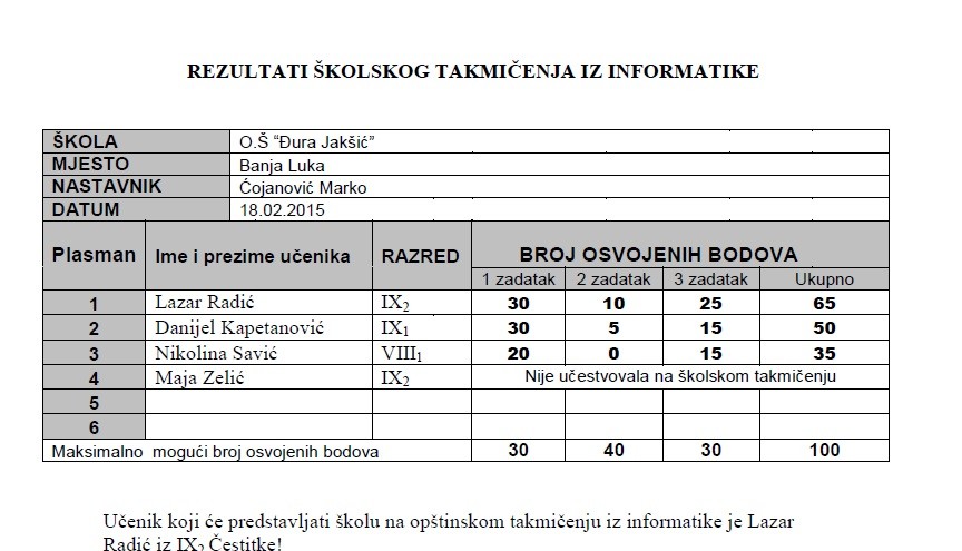 Ученик, који ће представљати нашу школу на општинском такмичењу, је Лазар Радић из IX2.