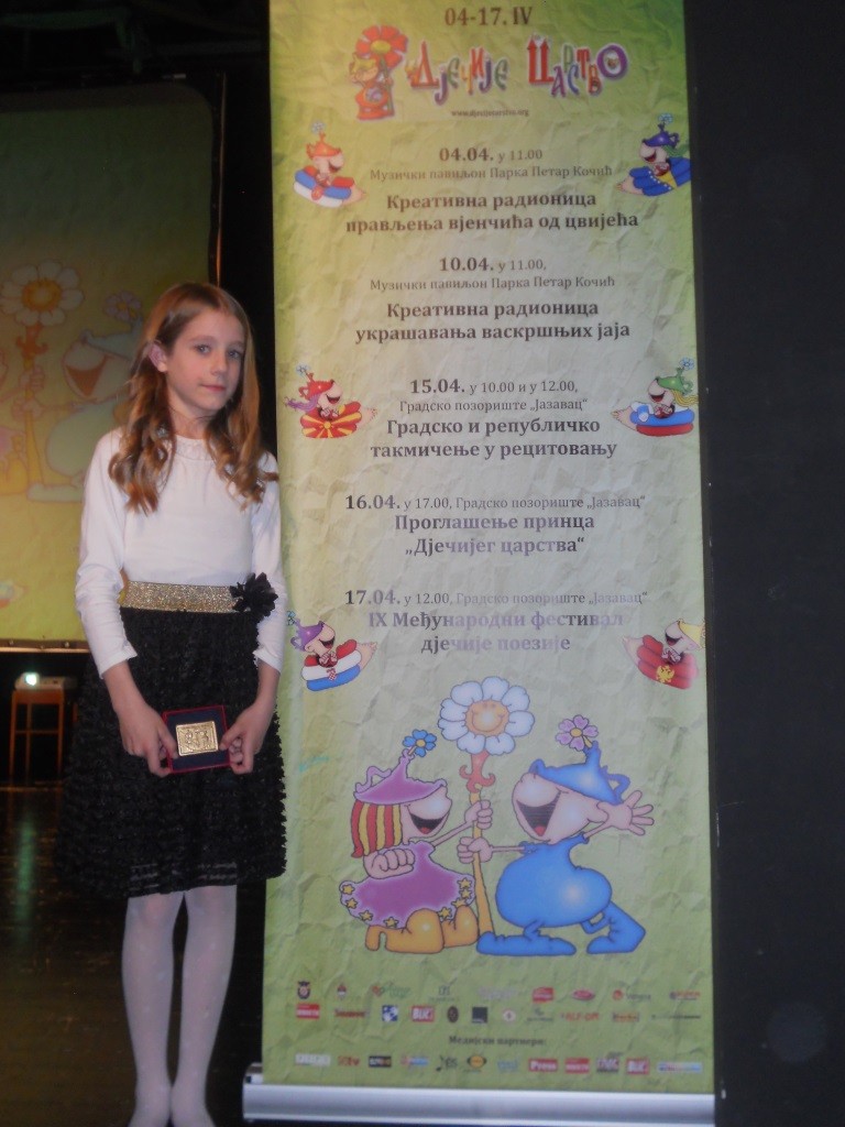 Међународног фестивала поезије за дјецу „Дјечије царство“. Међу финалистима се представила и ученица наше школе Софија Миловановић (IV3), пјесмом АВ,АВ.