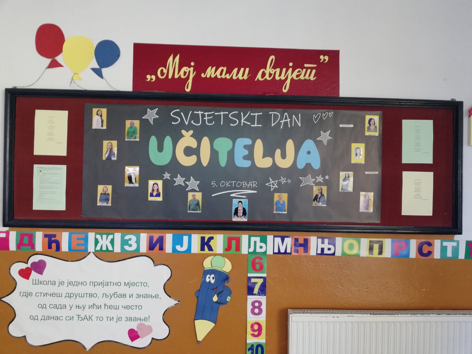Међународни дан учитеља, 5. октобар, обиљежава се у преко 100 земаља свијета, па тако и у нашој земљи. Прогласио га је УНЕСКО 1994. године, у спомен на исти датум 1966. године, када је потписана Препорука о статусу учитеља. Бити учитељ је најплеменитији позив, који ствара сва остала занимања. Чланови новинарске и ликовне секције наше школе обиљежили су Дан учитеља и на тај начин истакли значај и улогу учитеља у образовању и развоју дјетета, као и то колика је улога учитеља у самом формирању личности дјетета.