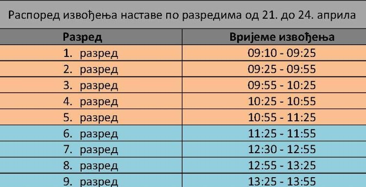 РАСПОРЕД ИЗВОЂЕЊА НАСТАВЕ ОД 21-24. априла 2020. године