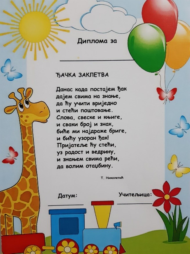 Након полагања свечане ,,Ђачке заклетве“, прваци су добили пригодне поклоне од школе и Града Бања Лука те бесплатне уџбенике за први разред.