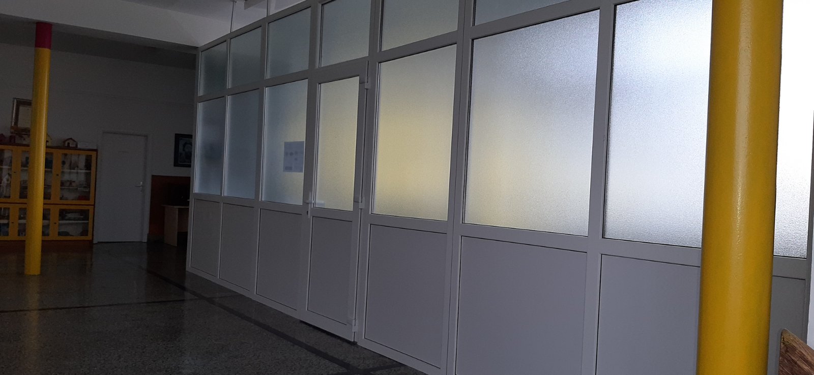 ~Зборница претворена у учионицу, дио ходника преграђен за наставнике~