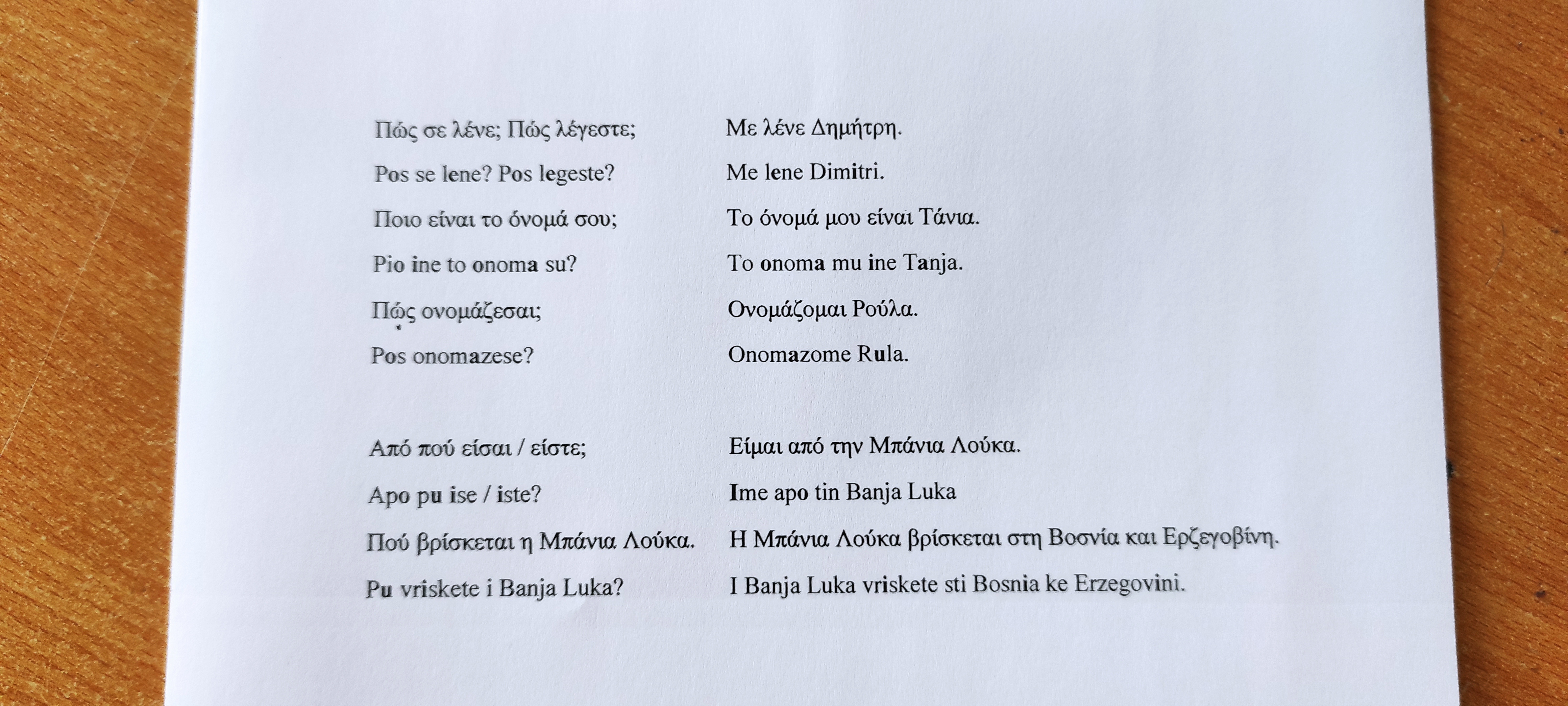 На овом часу било је говора о географским обиљежјима и природним карактеристикама Републике Грчке, обичајима и навикама њеног становништва, а ученици су научили и основе споразумијевања на грчком језику.