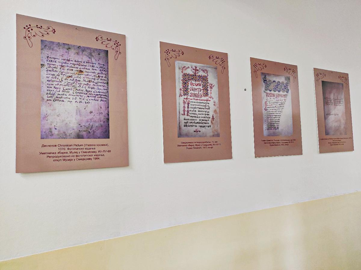 У холу наше школе постављена је изложба под називом „Рукописна средњовековна баштина Бранковића”.