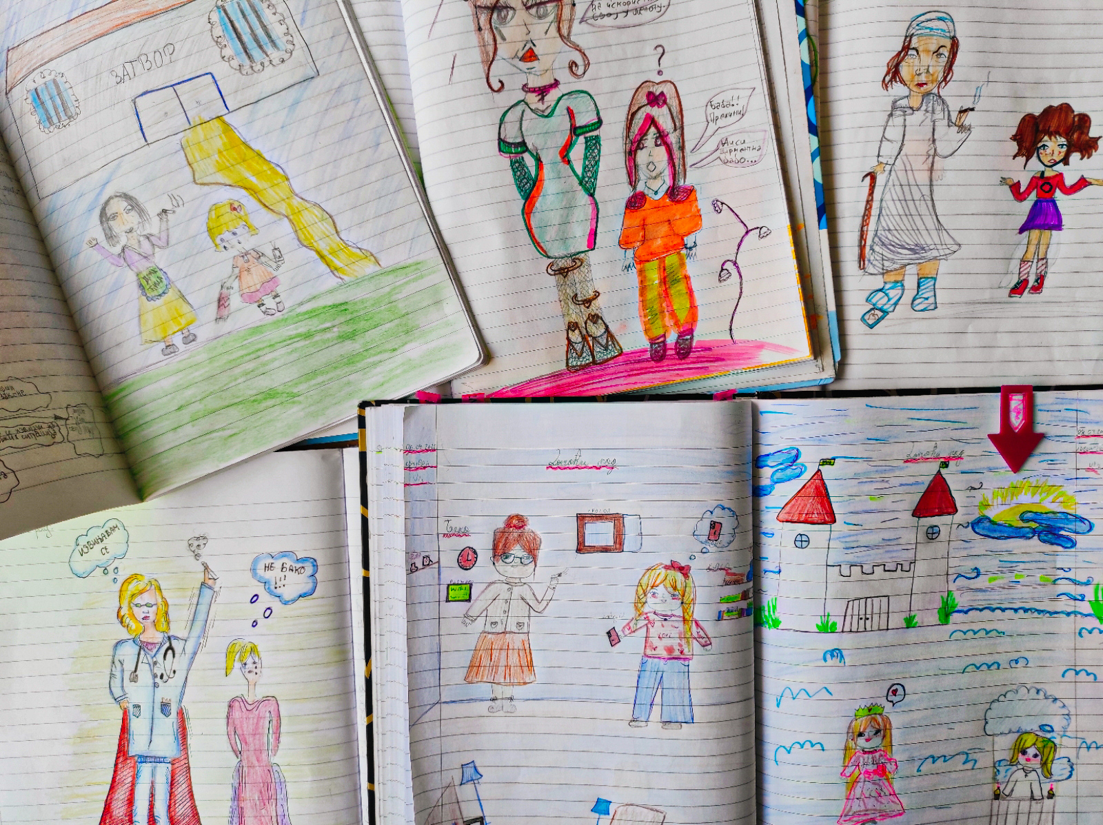 На фотографијама се налазе ученичке илустрације Елсе, њене баке и њихове земље из маште.