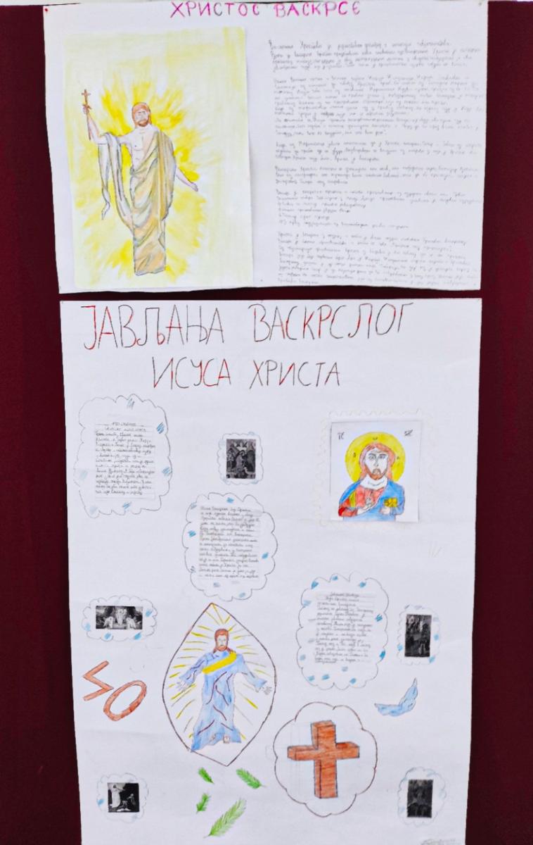 У сусрет празнику Васкрсења Господа нашега Исуса Христа, у сусрет Празнику над празницима, кроз који славимо побједу живота над смрћу, ученици осмих разреда наше школе приредили су једну ликовно-литерарну изложбу.