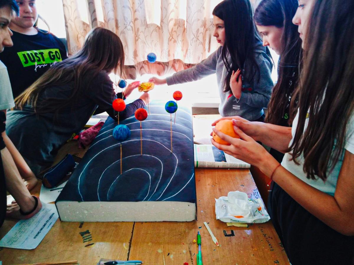 Ученици одјељења VI 2, заједно са наставницом географије Бранком Малићевић, израдили су макету Сунчевог система и изложили је у холу Школе.