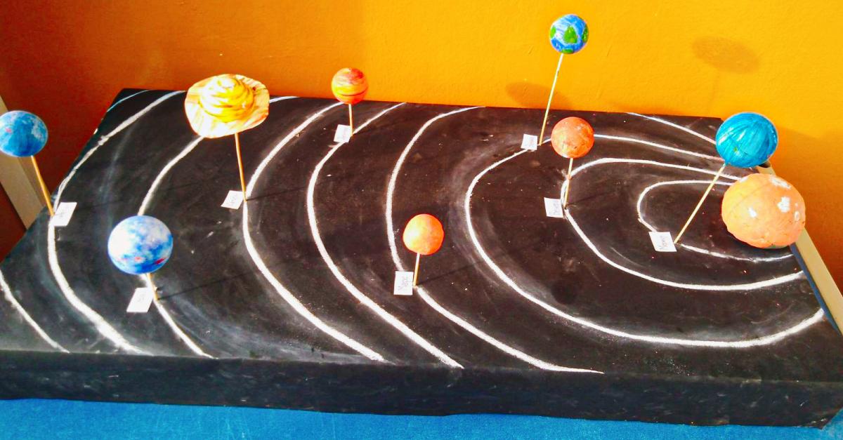 Ученици одјељења VI 2, заједно са наставницом географије Бранком Малићевић, израдили су макету Сунчевог система и изложили је у холу Школе.