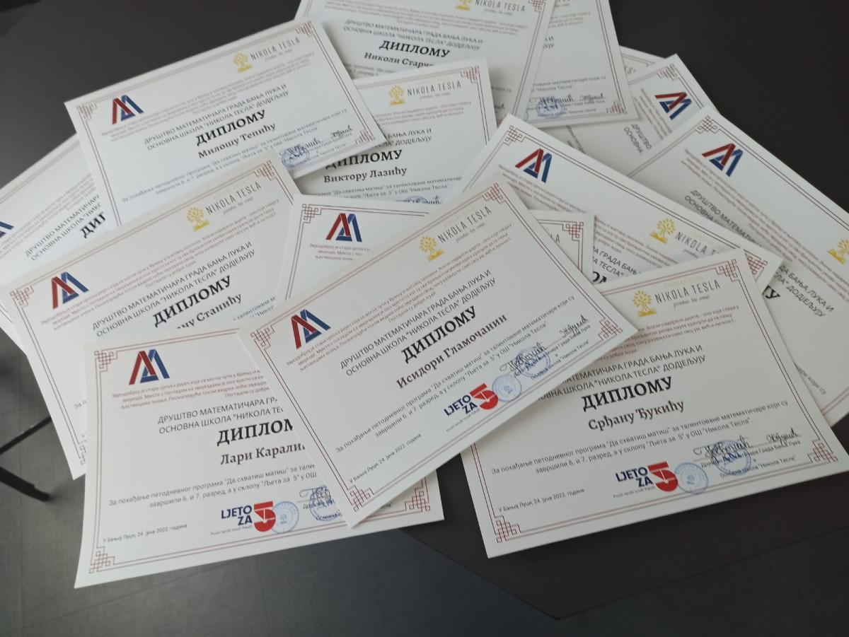 У периоду од 20. 06. до 24.06. 2022. године, у сарадњи Друштва математичара Града Бања Лука и ОШ „Никола Тесла“ организована је прва Љетња школа математике. Ученици шестог и седмог разреда су кроз петодневни програм „Да схватиш матиш“ проширивали своја знања из математике, дружили се и још једном потврдили како је математика дивна наука.