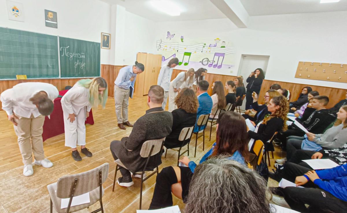 Поводом њеног доласка, а подстакнути трагичним страдањем 52 ученика наше школе у Другом свјетском рату, ученици ЈУ Пољопривредне школе из Бање Луке, под менторством проф. Драгише Илисића, професора српског језика и књижевности, извели су сценски рецитал под називом „Педесет двоје”.
