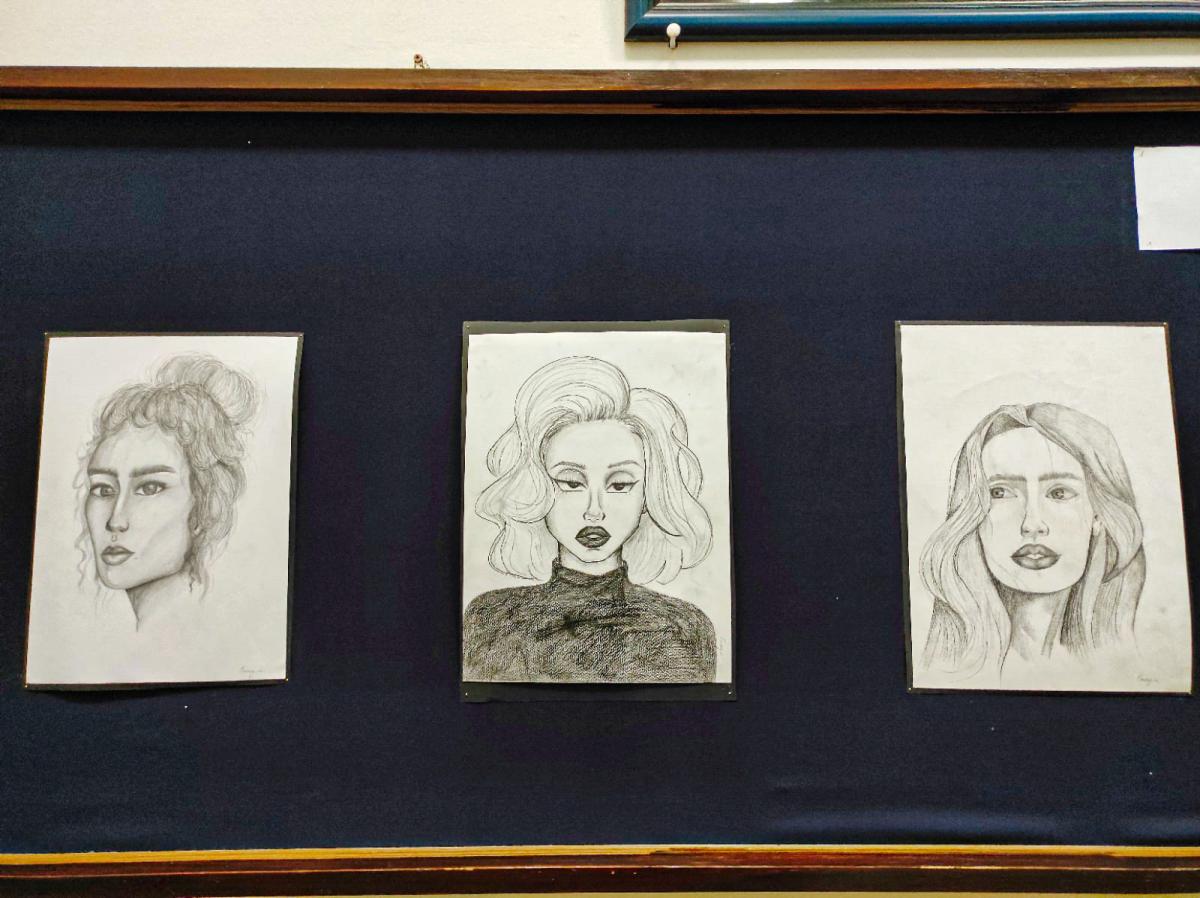 Своје портрете, рађене углавном техником оловке, у холу Школе изложила је Емилија Каурин, ученица одјељења IX 2.