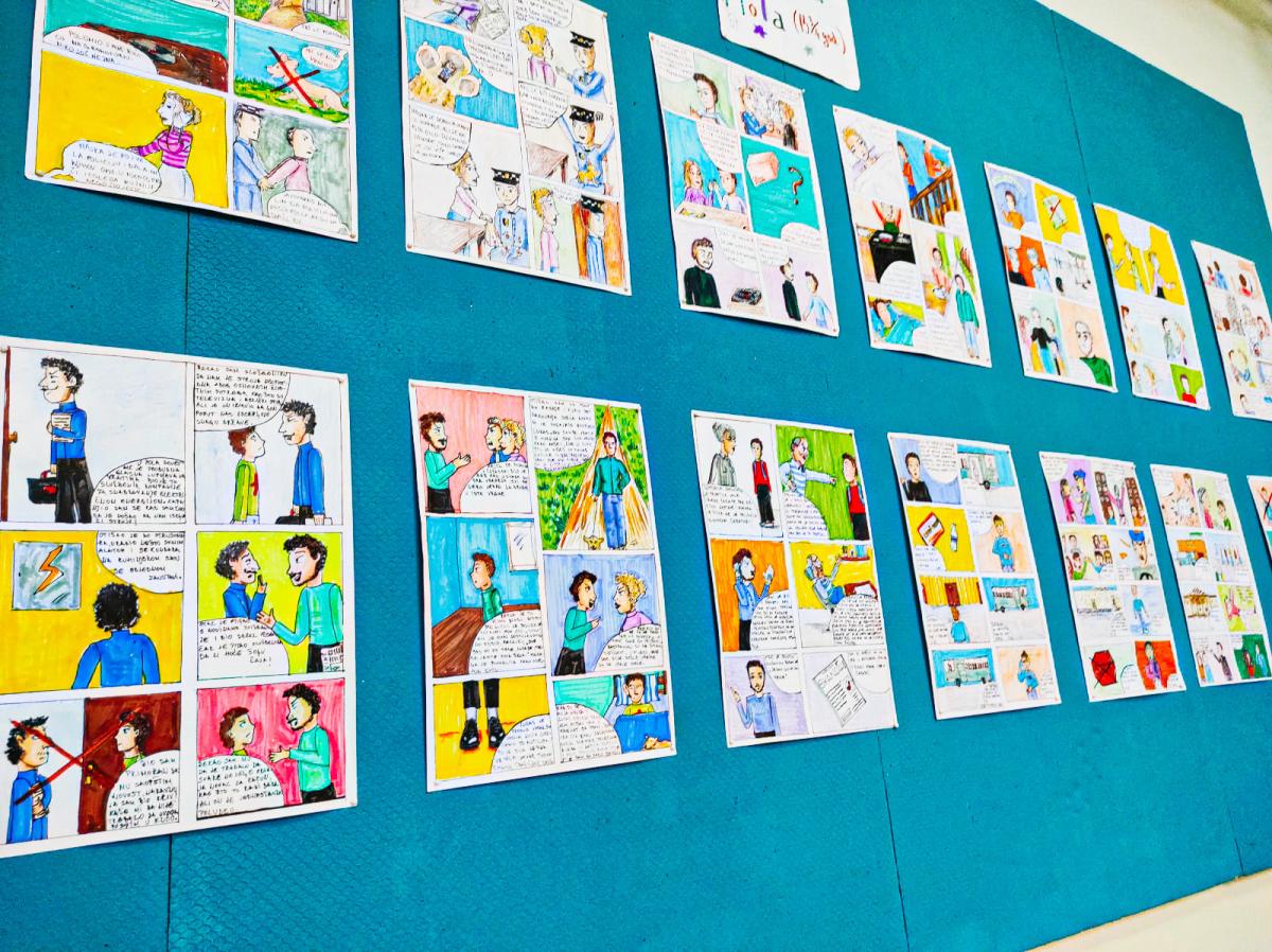 У сарадњи са мср Александром Поповићем, наставником српског језика, Ана Томић, ученица одјељења VIII 3, у холу Школе поставила је изложбу ликовних радова инспирисаних дјелом „Тајни дневник Адријана Мола (13 3/4 година)” књижевнице Сју Таунзенд.