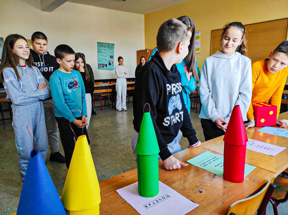 Да понављање обрађеног градива може бити и занимљиво, показали су наставник и ученици седмог и деветог разреда, који су творбу (грађење) ријечи у српском језику, подјеле гласова и њихове особине, гласовне алтернације (промјене), те глаголе и особине ове промјенљиве врсте ријечи поновили помоћу игре „Човјече, не љути се!”.