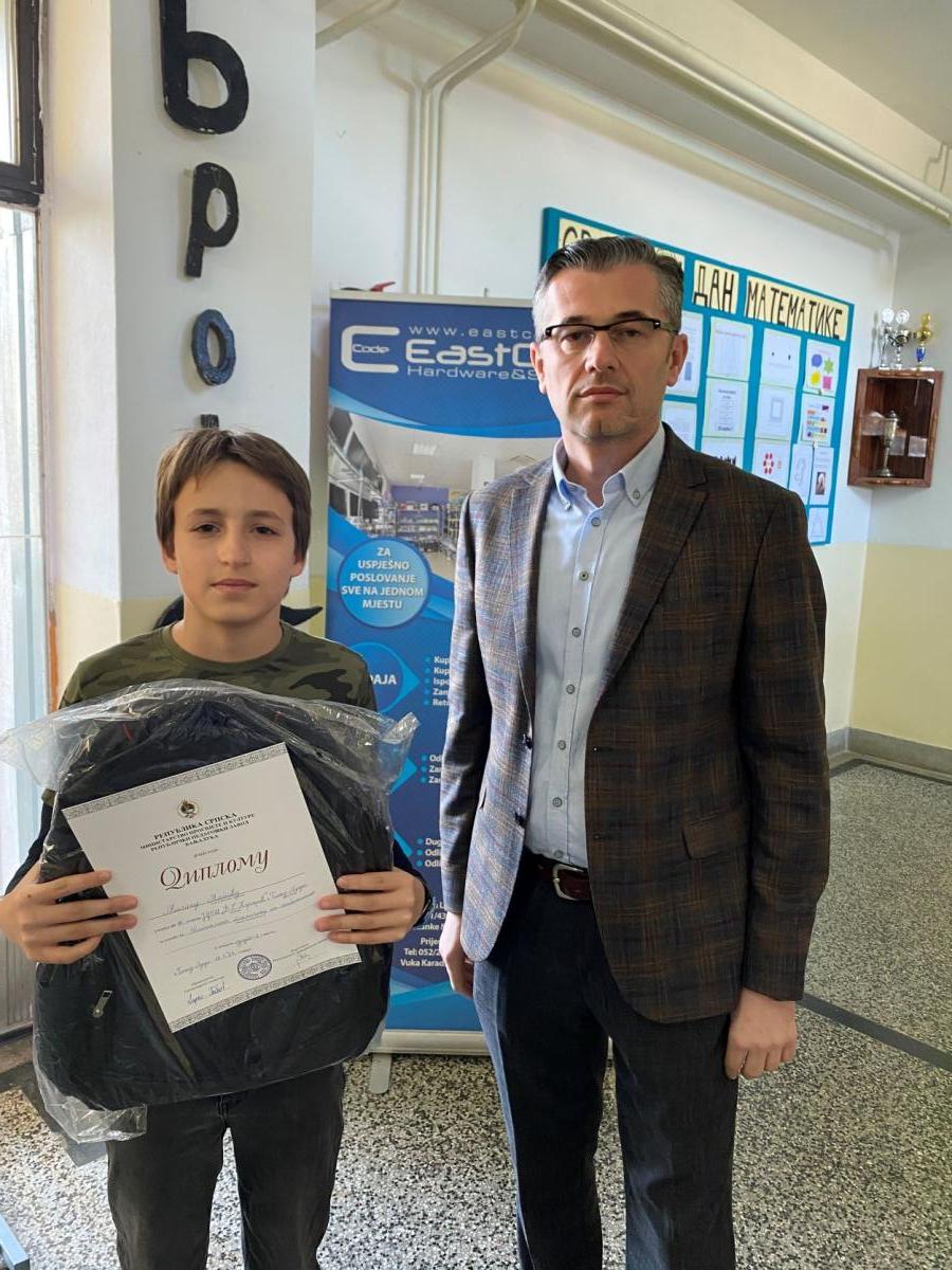 Ученик Јустин Рољић, који је представљао нашу школу на такмичењу за ученике осмог разреда, заузео је одлично треће мјесто.