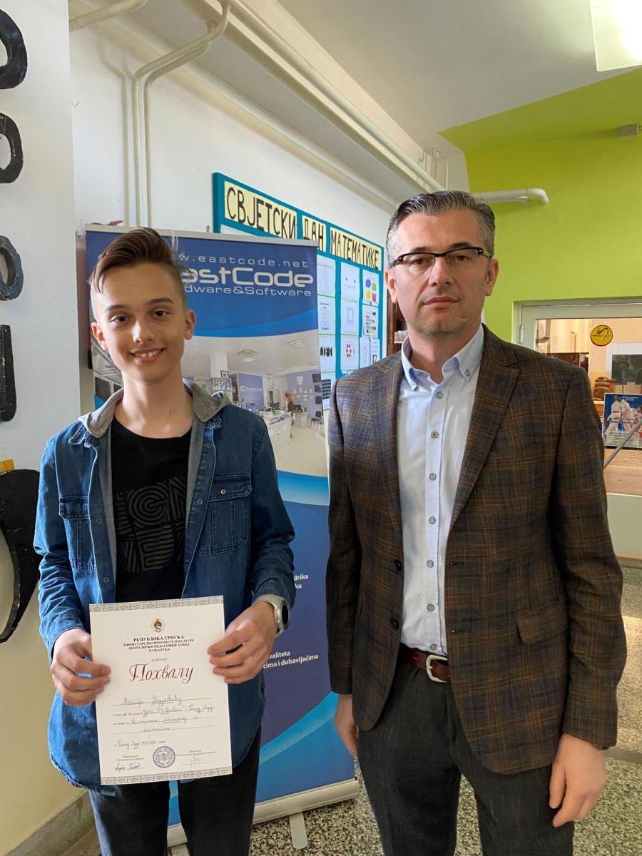 Ученик Јустин Рољић, који је представљао нашу школу на такмичењу за ученике осмог разреда, заузео је одлично треће мјесто.