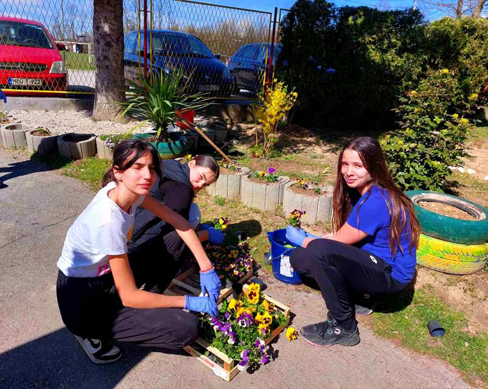 Ученице које похађају часове еколошке секције, заједно са наставницом биологије Наташом Илић, уљепшале су школско двориште и оплемениле га новим облицима, бојама и мирисима.