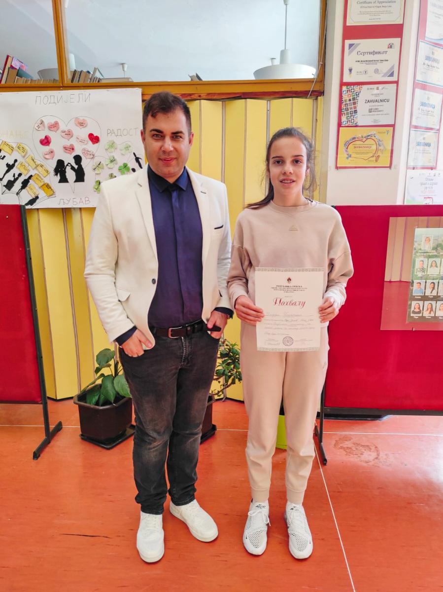 (четврто мјесто на Републичком такмичењу из српског језика и језичке културе за ученике седмог разреда)