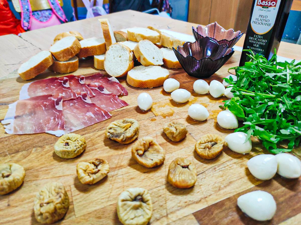 Ученици су у другом дијелу радионице, подијељени у двије групе – „Даме” (дјевојчице) и „Господа” (дјечаци), од наведених састојака (само са сухим смоквама) припремали своју варијанту овог оброка и одлично се забавили.