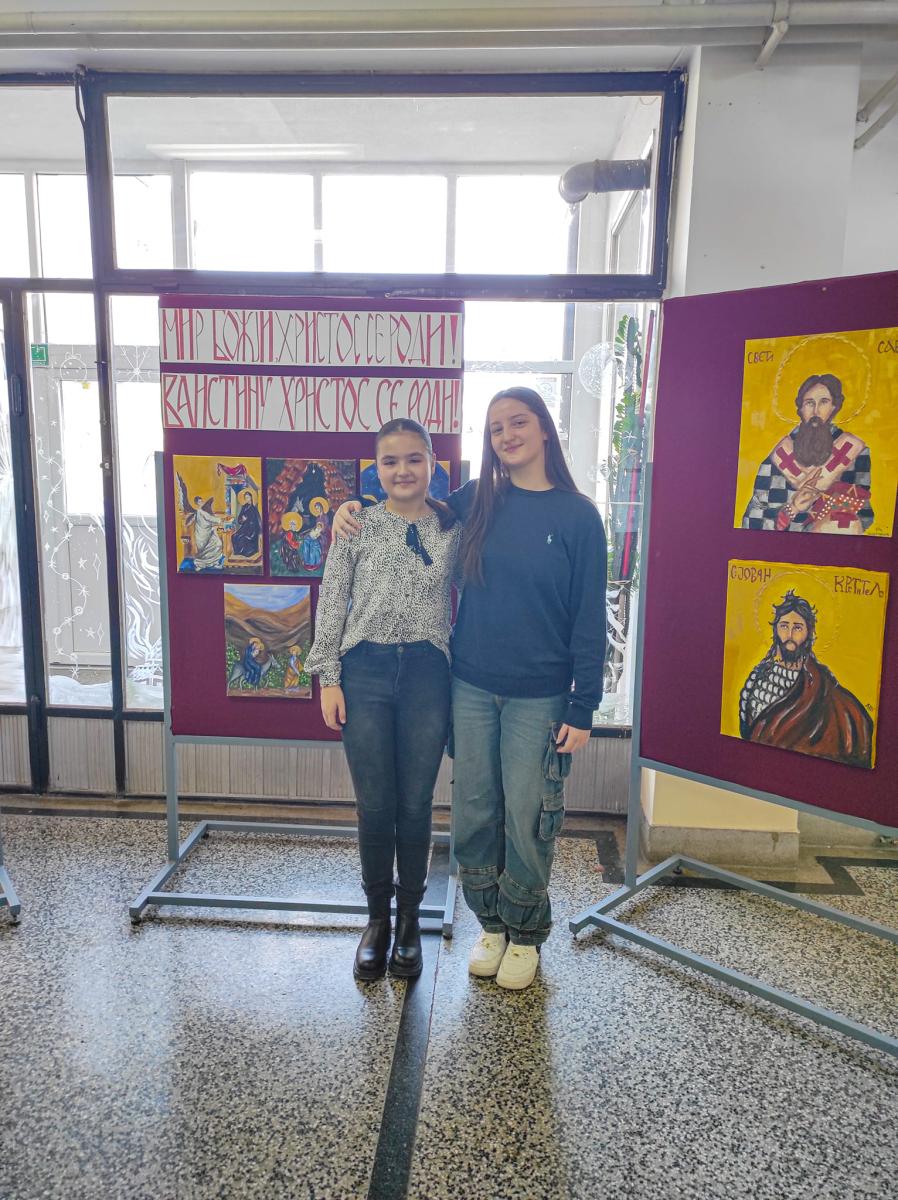 У ово претпразничко вријеме, када ишчекујемо најрадоснији хришћански празник Божић, жељели смо да радост коју осјећамо учинимо још и већом. Као плод те наше жеље, а захваљујући вјештим рукама Ане Томић, ученице одјељења IX 3, која је пристала да ту нашу жељу претвори у стварност, у нашој школи је у четвртак, 28. децембра 2023. године, отворена изложба икона инспирисаних празником Христовог рођења, али и радовa насталих у част наше републике.
