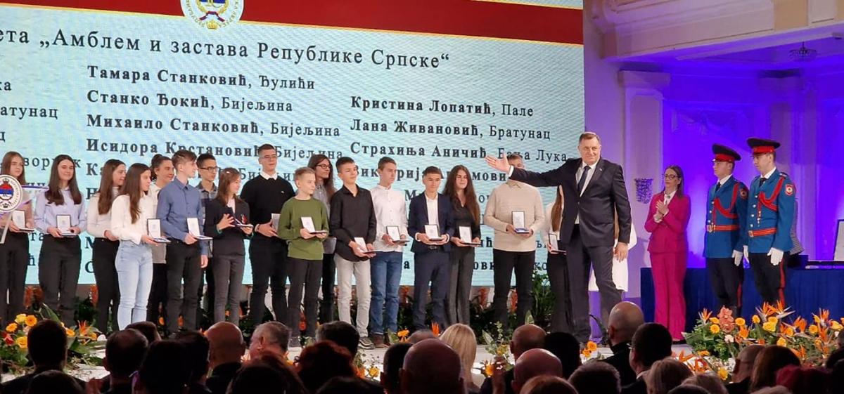 На свечаној манифестацији уприличеној у Културном центру Бански двор у Бањој Луци у уторак, 09. јануара 2024. године, поводом обиљежавања Дана Републике Српске наш ученик Страхиња Аничић одликован је и од стране предсједника Републике господина Милорада Додика.