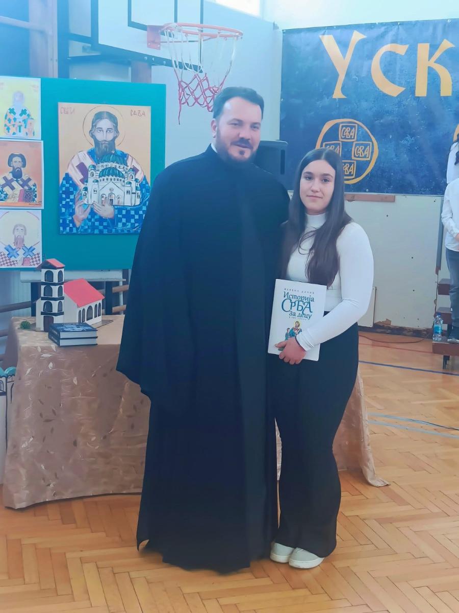 За најљепше стихове и прозне редове о првом српском архиепископу и просвјетитељу, црквена општина Дракулић и ове године обезбиједила је пригодне поклоне – књиге, а награђени ученици су: