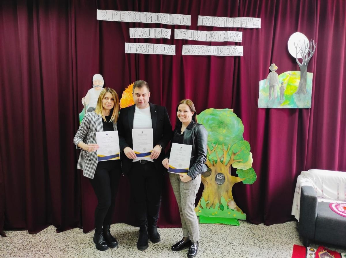 На Другом регионалном меморијалном такмичењу малих рецитатора „Марија Бузаџија”, које је данас, 16. марта 2024. године, одржано у ЈУ Основној школи „Јован Дучић” у Залужанима прво мјесто у конкуренцији ученика другог и трећег разреда заузела је ученица наше школе Ирина Јеличић, ученица одјељења III 1.