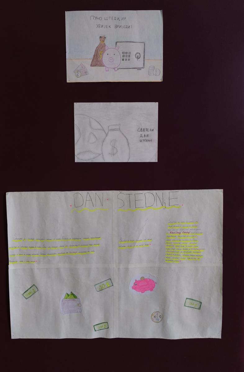 Поводом Свјетског дана штедње који се обиљежава 31. октобра, као подсјетник на Први међународни конгрес штедионичара одржан 1924.године, у нашој школи реализован je ликовни конкурс на којем су учествовали ученици од првог до петог разреда.