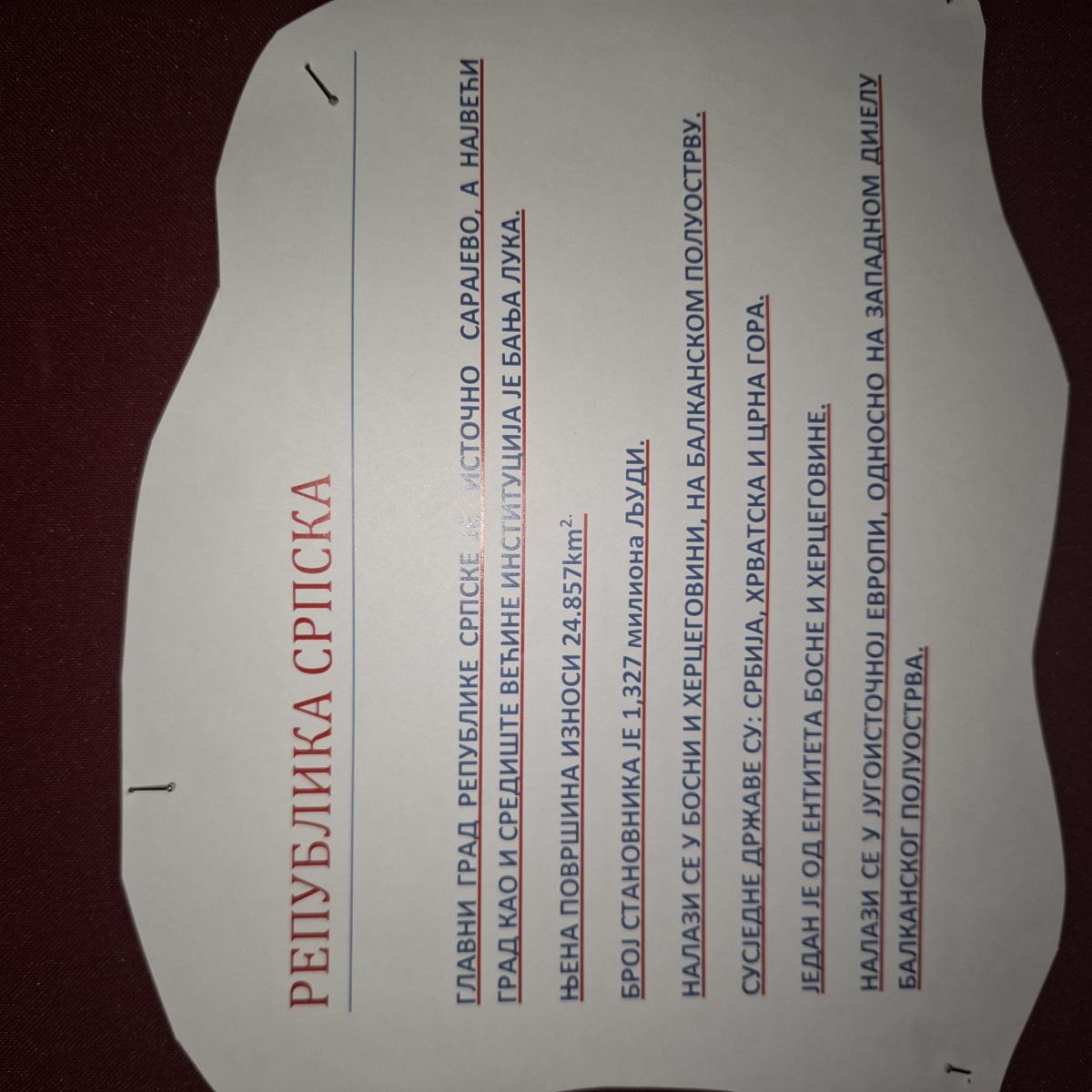 Дан Републике Српске се празнује 9. јануара као један од републичких празника у Републици Српској. Ове године наша Република слави 33. рођендан. Чланови Новинарске секције били су вриједни на часовима секције и дали су свој допринос у обиљежавању овог значајног датума. Они су украсили хол наше школе и писали о битним карактеристикама наше домовине. Република Српска је трајна категорија, већа од било кога. И како каже наш велики писац Бранислав Нушић, отаџбина није ограничен, оивичен и утјеловљен предмет. Отаџбина је мисао, отаџбина је вјера, а мисао и вјера никад не умиру. Република за нас који живимо у њој, представља нашу домовину која има душу, јединствену природу и људе који је красе и увијек је на првом мјесту у нашем срцу.