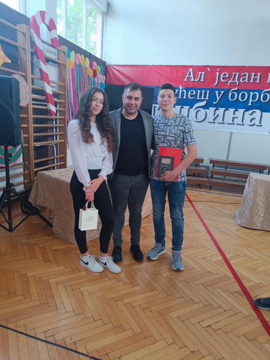 Скромне поклоне ученицима који су на различитим такмичењима бранили боје наше школе уручила је Слађана Брковић Грбић, предсједница Школског одбора.